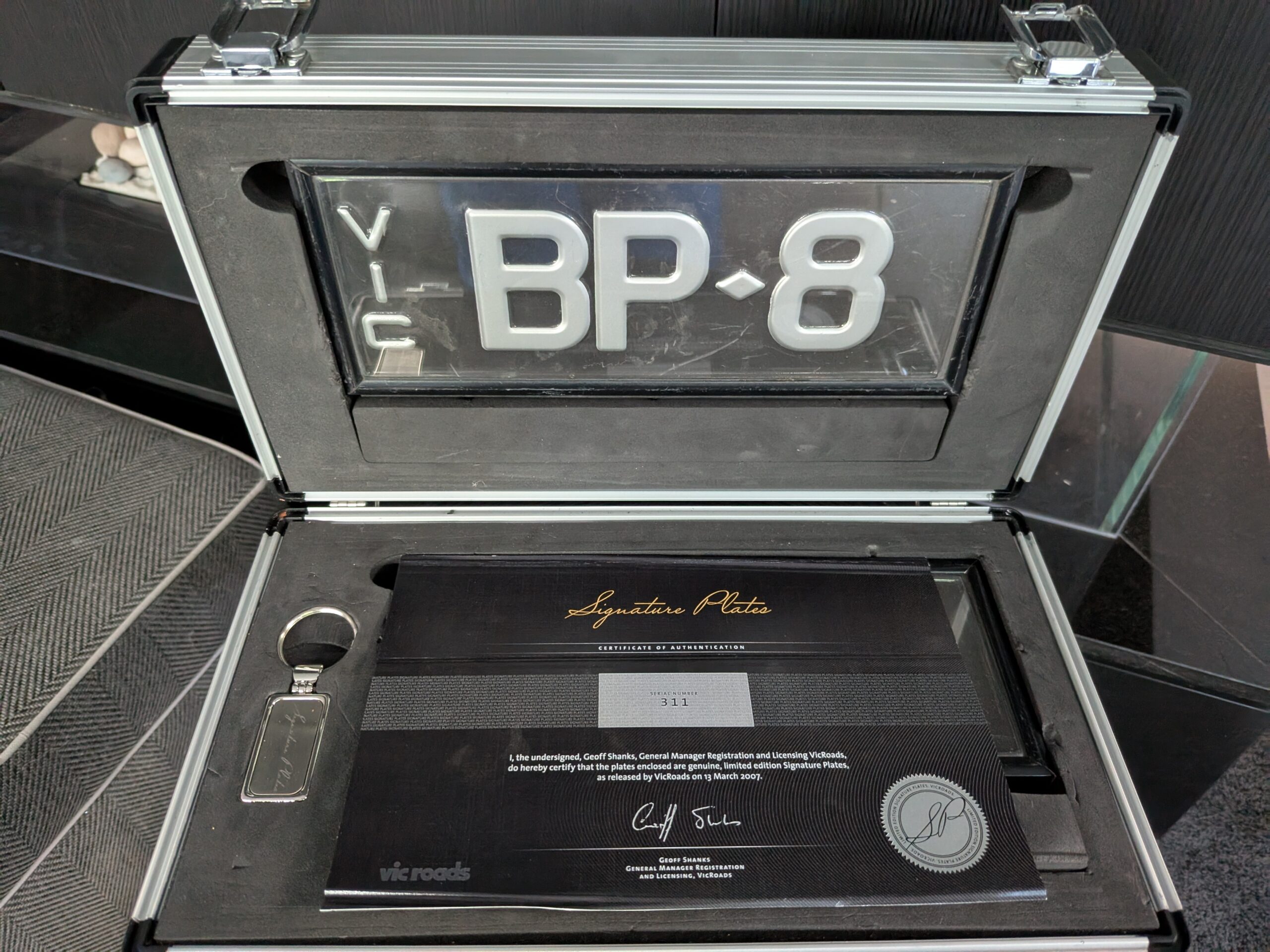 OK Team - with BP linked to the iconic fuel company and the mighty real estate firm, when combined with the powerful number 8, it's bound to excite. Presented for sale for the first time since it was purchased in 2007, when the range was released, this plate was among the first plates to be produced and sold - production number 311 in fact, which is very cool. Now retailing for $4.4K at VicRoads, this range has increased in popularity as a next in line alternative to the elite LNN/NNL number plate range which is in the hands of the private market.