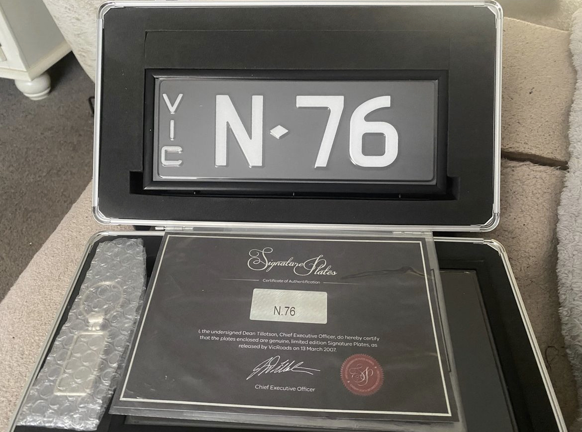 Ok team - we love ourselves a 3 character Signature Plate in the LNN format. They are just so valuable when you consider their rarity (only 2,600!) and they look fantastic. N has been a popular letter in recent times for its link to “number” particularly in the LNN format because you would say Number 76 for this plate - it just works. Not to mention descending numbers 7 and 6, which are strong enough in their own right, this is an attractive proposition and quite frankly, it’s great to look at!